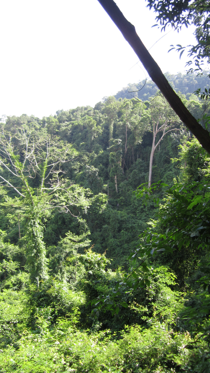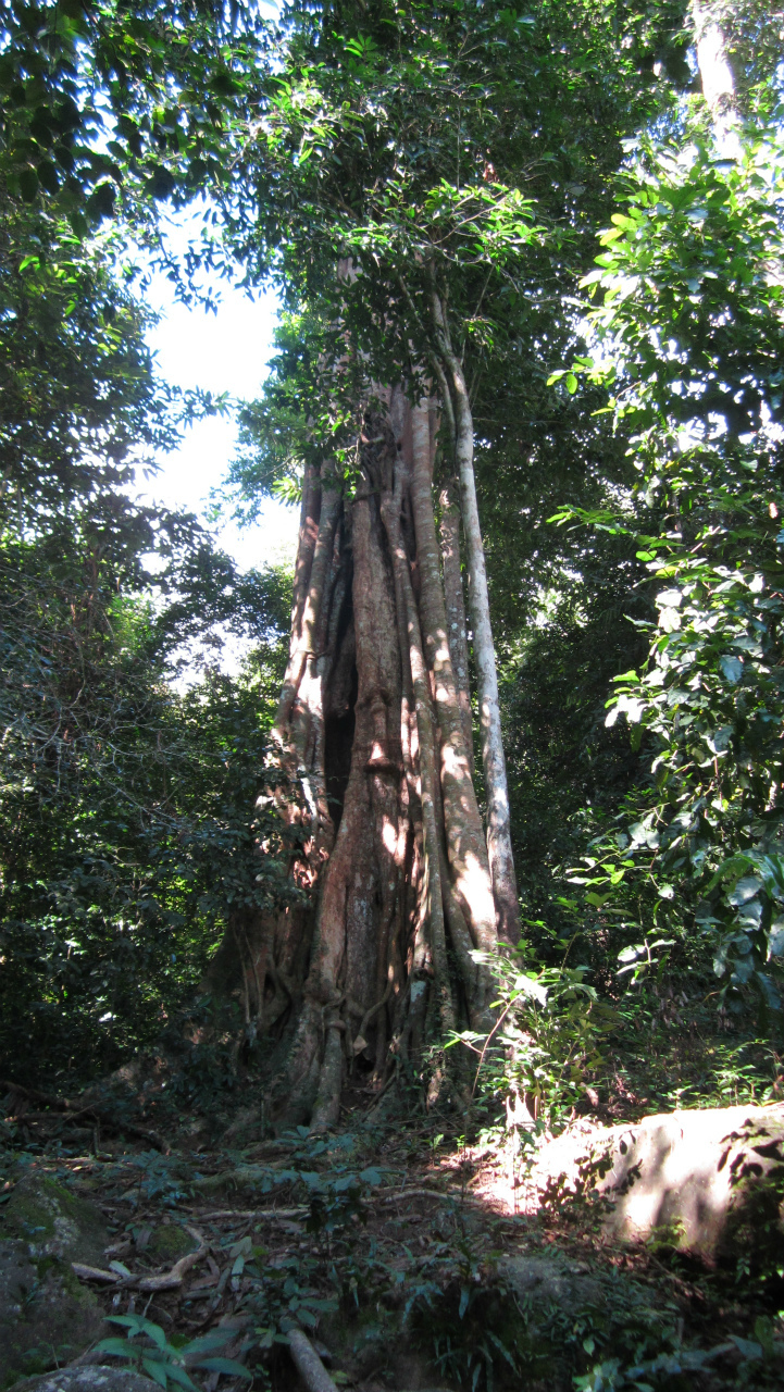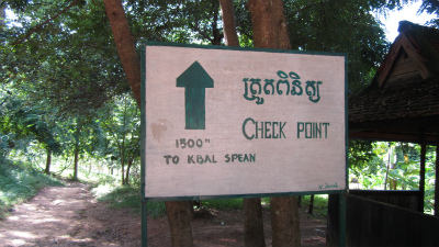 「ふぅ・・・到着!」 頂上付近まで到達すると、川に掛かる石橋を確認。 近くで滝の瀑布音が轟いていた。すると、ノコノコと男が近付いて来る。 上下を規定の制服を来た、身なりのしっかり した者だ。初老くらいの、その男は親しげな笑みを浮かべ、片言の英語で話掛けてくる。 『Where you come from?』 「じゃっ、じゃぱん」 地方遺跡には、対外国観光客の現地ガイドが居ることがある。 オフィシャルな職員らしく、決まった制服を着ている。茶色の シャツに長ズボンという格好だ。 大抵は英語を喋り、時に、日本語も話す者もいる。 必要なければ断ることも出来るが、当史跡のクバール・スピアンに関しては、素直に案内してもらった 方がいいだろう。ガイド本片手に我流で色々探ってみても、木々は深く 彫刻も小さいので、見つからない箇所も多い。 ガイドを雇った際の、 終了時にはチップとして2〜3$の支払いが必要。 |