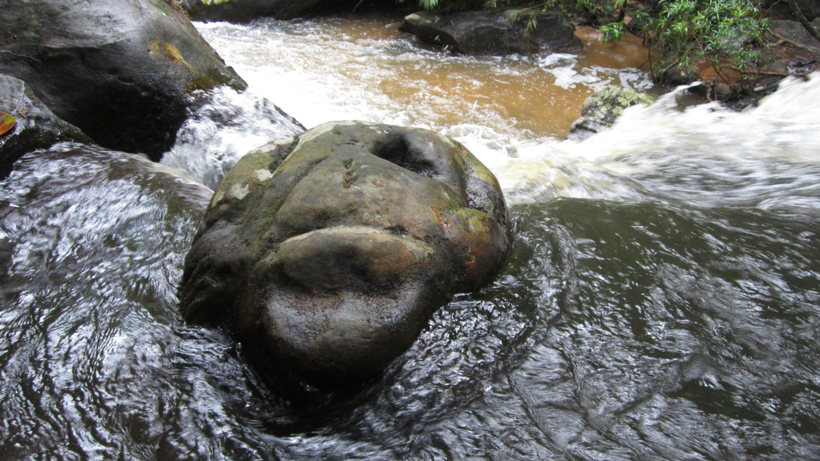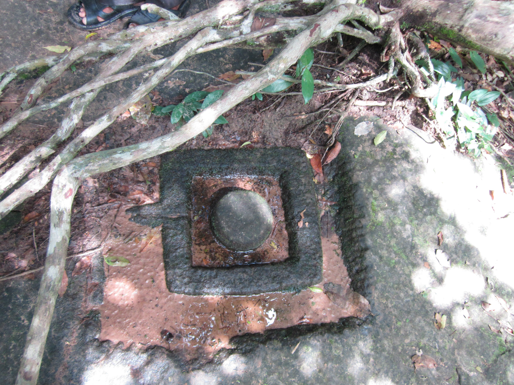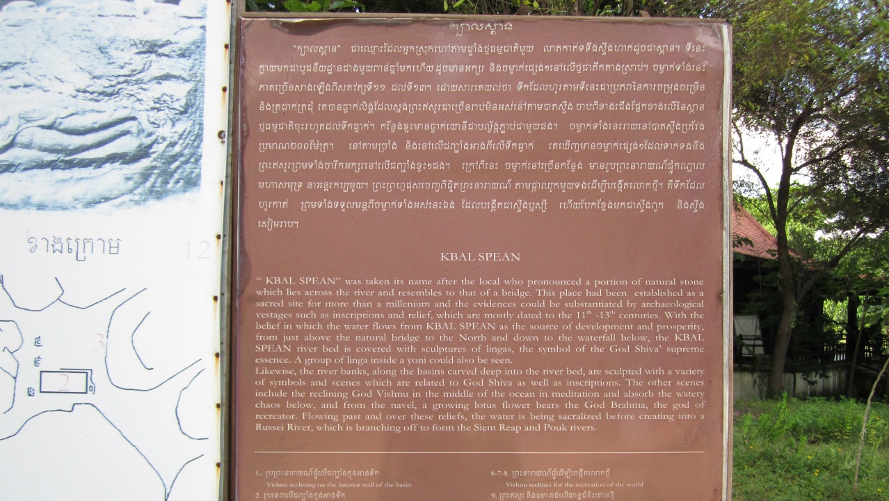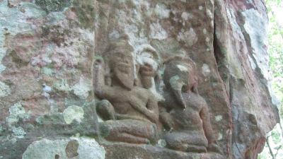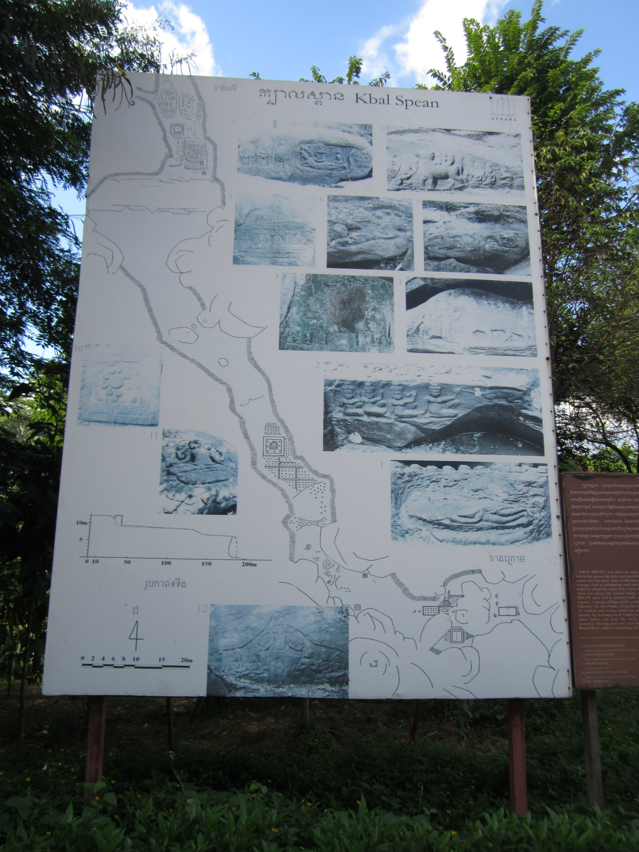 男は手招きをして、川底を指した。 『サウザントのリンガだよ』 「ほう」 リンガは男性器の象徴だ。つまり、川底の岩盤を平に均し、千個の突起を丁寧に1つ1つ 彫刻したのだ。大変な苦労だっただろう。 山の開祖は、ウダヤーディティヤヴァルマン二世という人で、1059年のことであるという。 ここの場所は、水が澄んだ乾季の渡航なら、さらに綺麗な大量のリンガが 映るだろう。 |