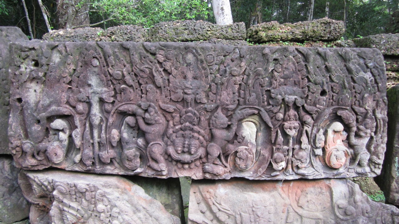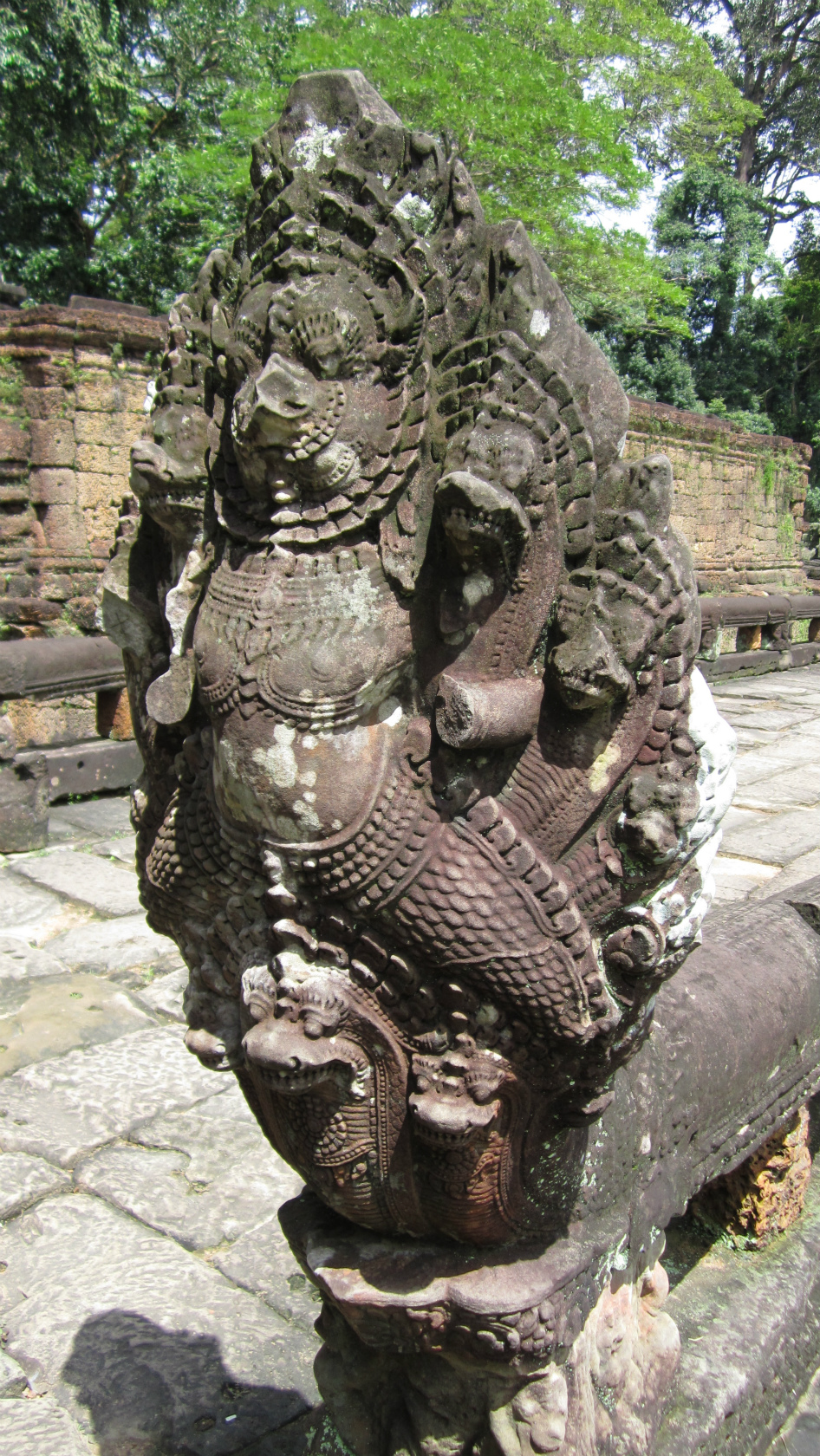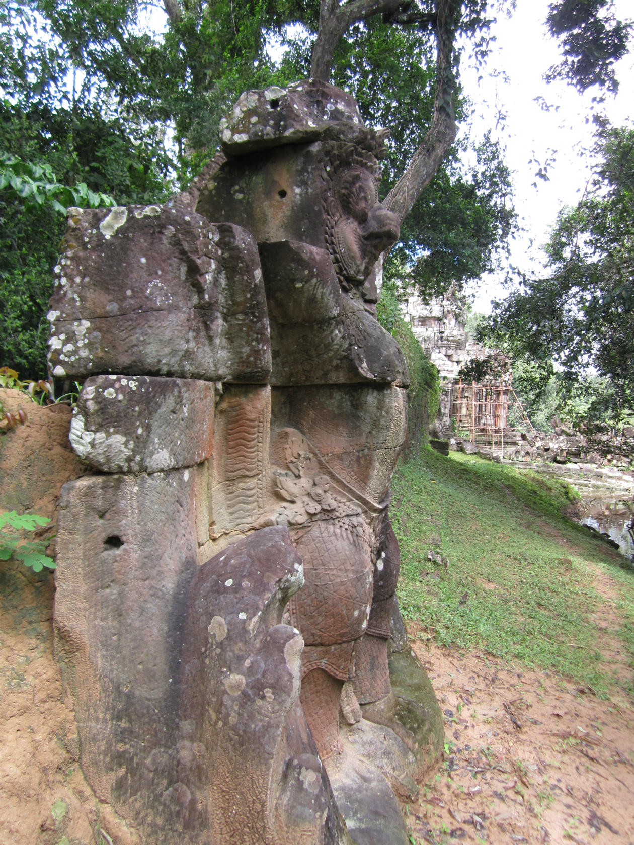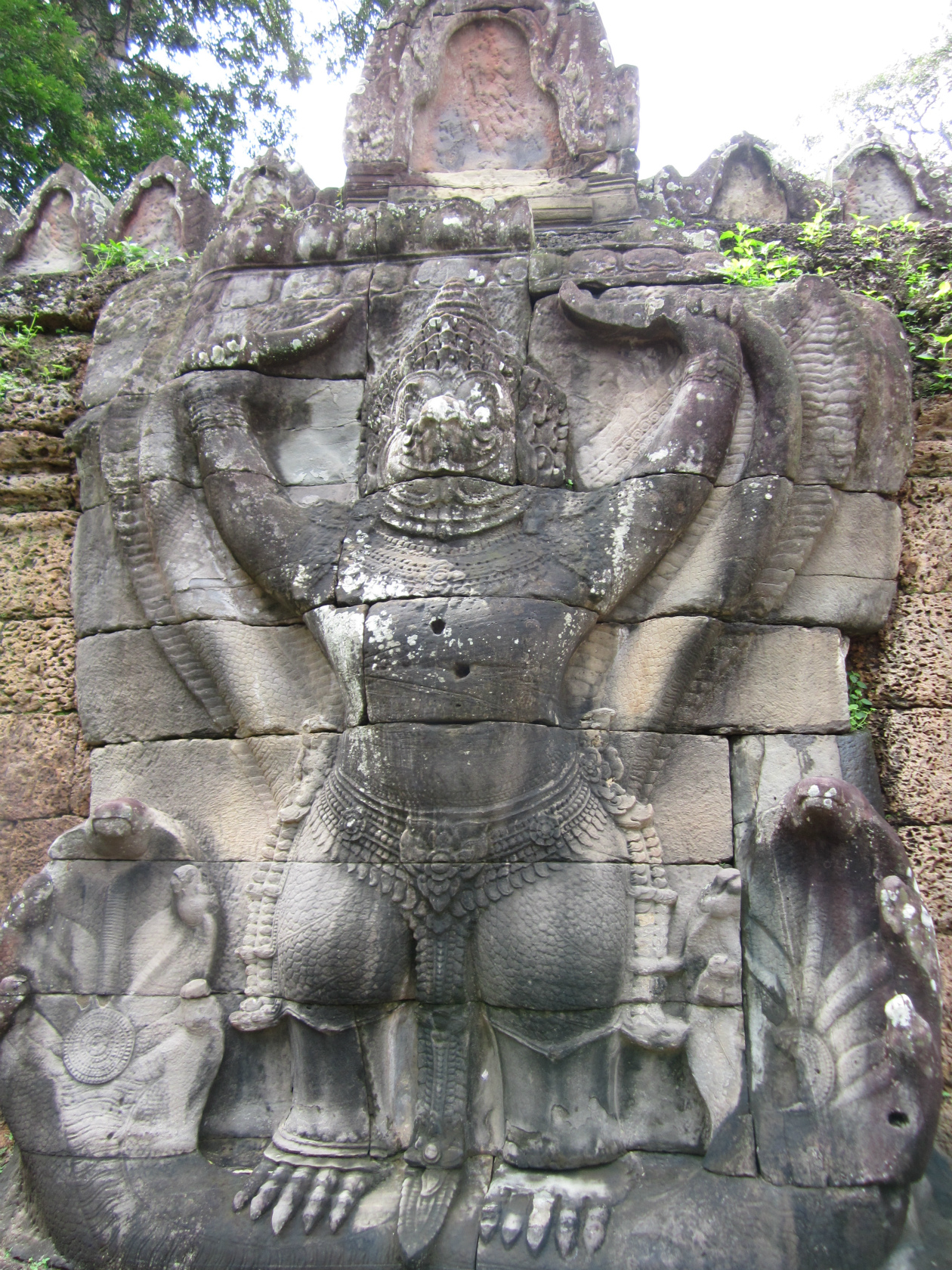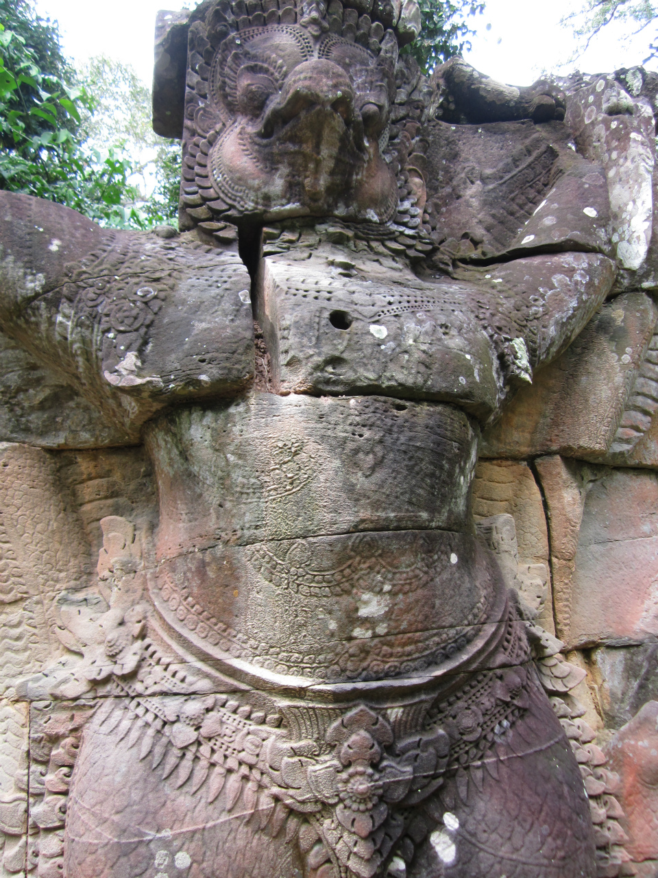 プリア・カンプリア・カンの魅力は、何といっても怪鳥ガルーダだろう 。東塔の左右に構えた姿の巨大彫刻を見ることができる。 保存の状態もよく、今にも飛び出してきそうだ。 |