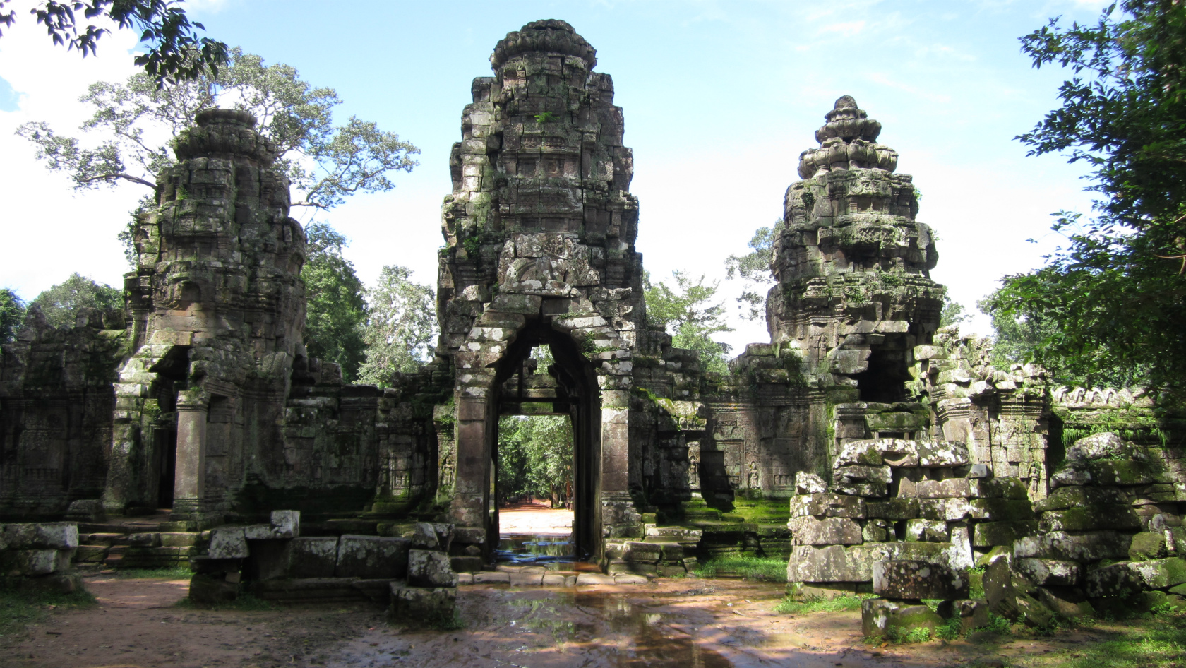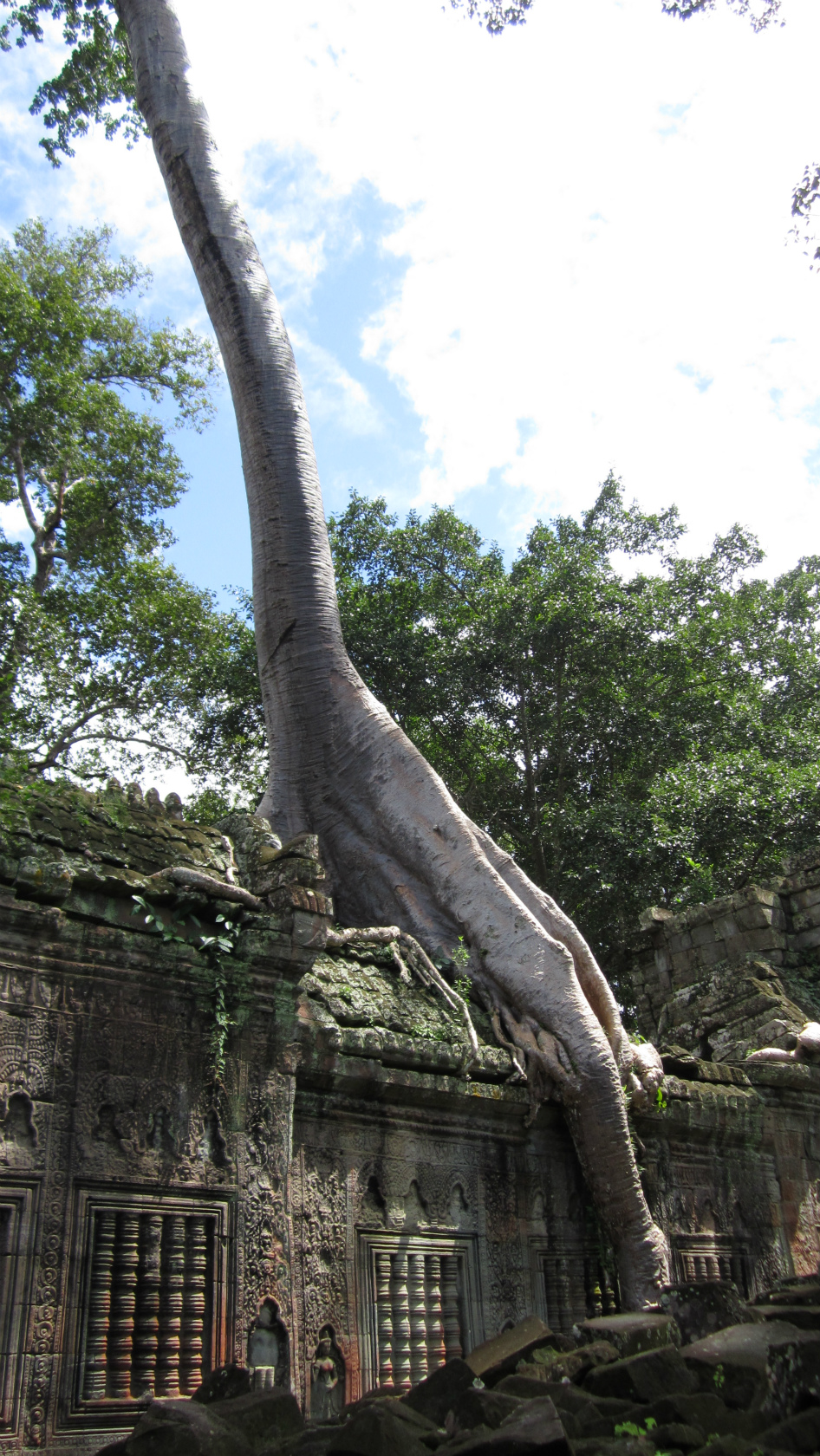 創建は12世紀末で、ジャヤヴァルマン七世が ニャック・ポアンとほぼ同時期に造った施設である。敷地内に生える榕樹の背が高い。 |