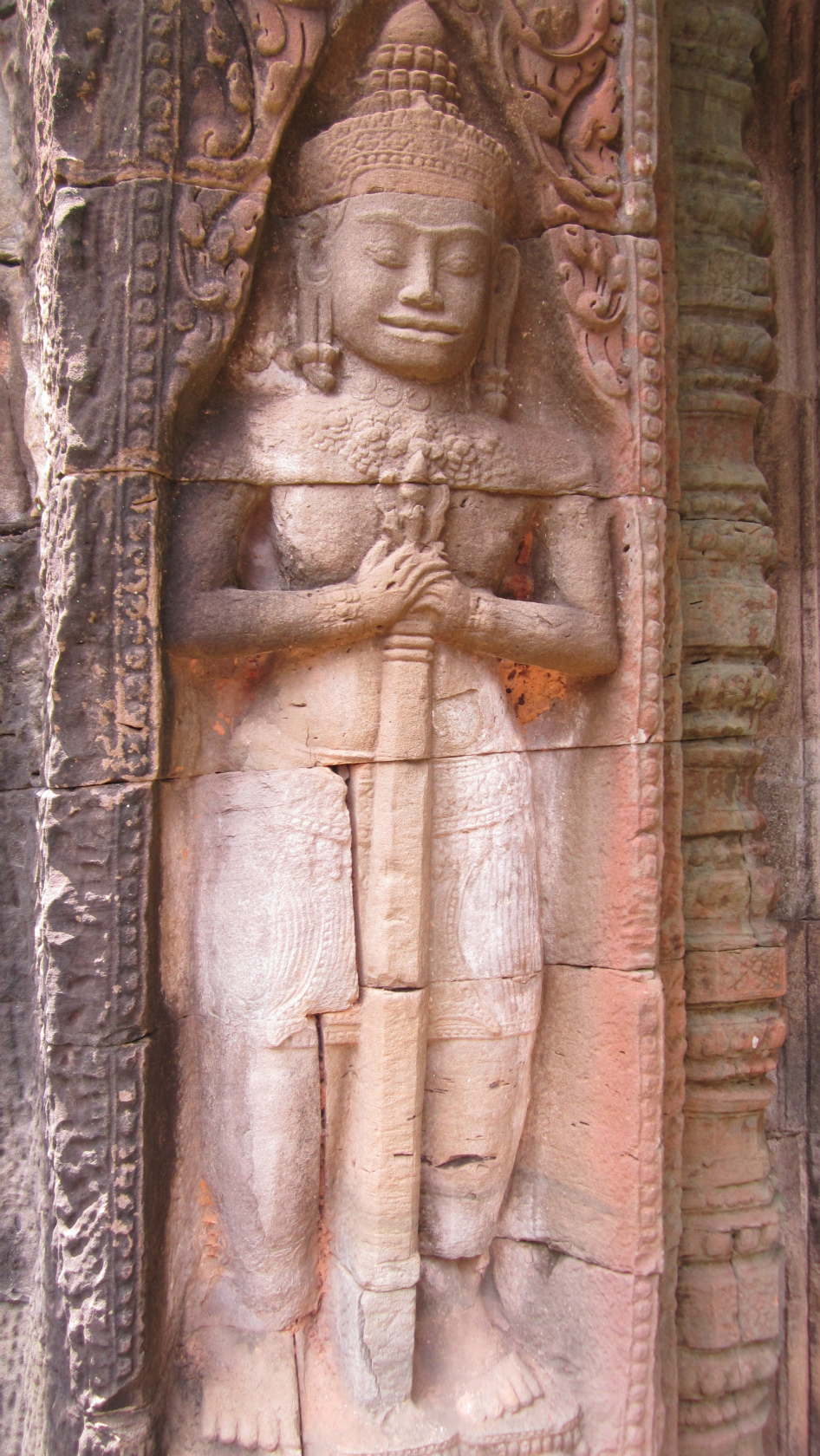 敷地の広さは700×800mと、中規模クラスの建造物で、 その昔は、運営に9万7840人が奉仕し、踊り子が数千人常駐していたという。 創建はジャヤヴァルマン七世であったが、没後に ジャヤヴァルマン八世が即位しヒンドゥーに改宗する。 これにより、仏教寺院として建てられたプリア・カンは廃仏毀釈の対象となり、 シヴァ派の信者達によって デバターや仏教由来の壁面彫刻が削られたり、破壊されたりした。 |