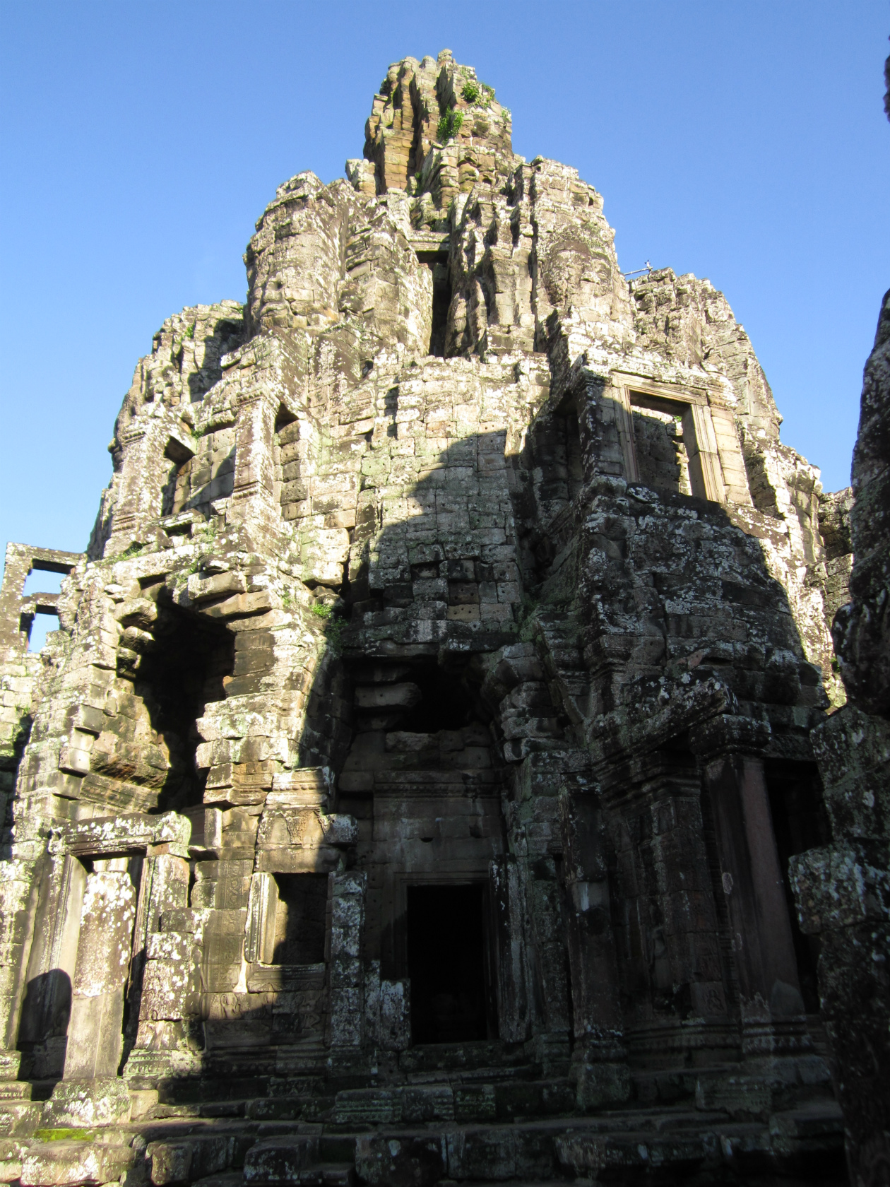 1181年にジャヤヴァルマン七世がアンコールトム建設を開始したが、 以降の王が3代つづいて延べ増建築を担った。当初、ジャヤヴァルマン七世は大乗仏教に帰依 していたが、のちの王はヒンドゥーに再び改宗したりと、彼らの意向で 途中から設計変更や改造が実行され、ワットに比べ設計上の画一を欠き、やや複雑な構造をしている。 文献で追求するに、地下回廊に相当する部屋も存在するようだ。 |
