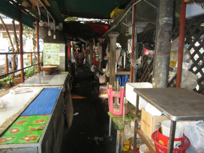 何といっても出店は、(から揚げ屋)(焼き鳥屋)が多かった。 屋台の半分近くを占めているだろう。安ければ、焼き鳥一本10B、骨付きから揚げ30B、日本で云う クリスマスの大型チキン揚げで50Bくらい。やはり驚くほど安い。 |