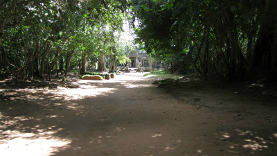 創建は12世紀末で、ジャヤヴァルマン七世が ニャック・ポアンとほぼ同時期に造った施設である。敷地内に生える榕樹の背が高い。 |