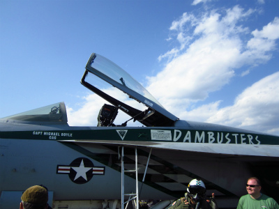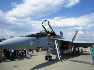 VFA-195はパイロットと2ショット写真が撮れるとあって、大行列ができて いました。小さな子供用ヘルメットも用意されており、子供達も大喜びでした。 |