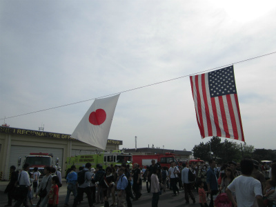 | 今年は、北朝鮮有事の真っ只中の期間に開催された こともあり、門前のセキュリティチェックが例年より強化され、基地内入場に余計に時間が 掛かったようです。 |