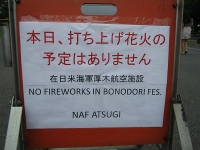 | メイン会場 のフットボール広場から滑走路エリアへと続くHalsey Aveは 閉鎖され、それ以上は進行できません。およそ、移動できる範囲は 春の1/3程度といった所でしょうか。それでも、露天や小児用アトラクションが 展開され、そこそこ活気はあります。浴衣を来た外人も多く目にしました。 |