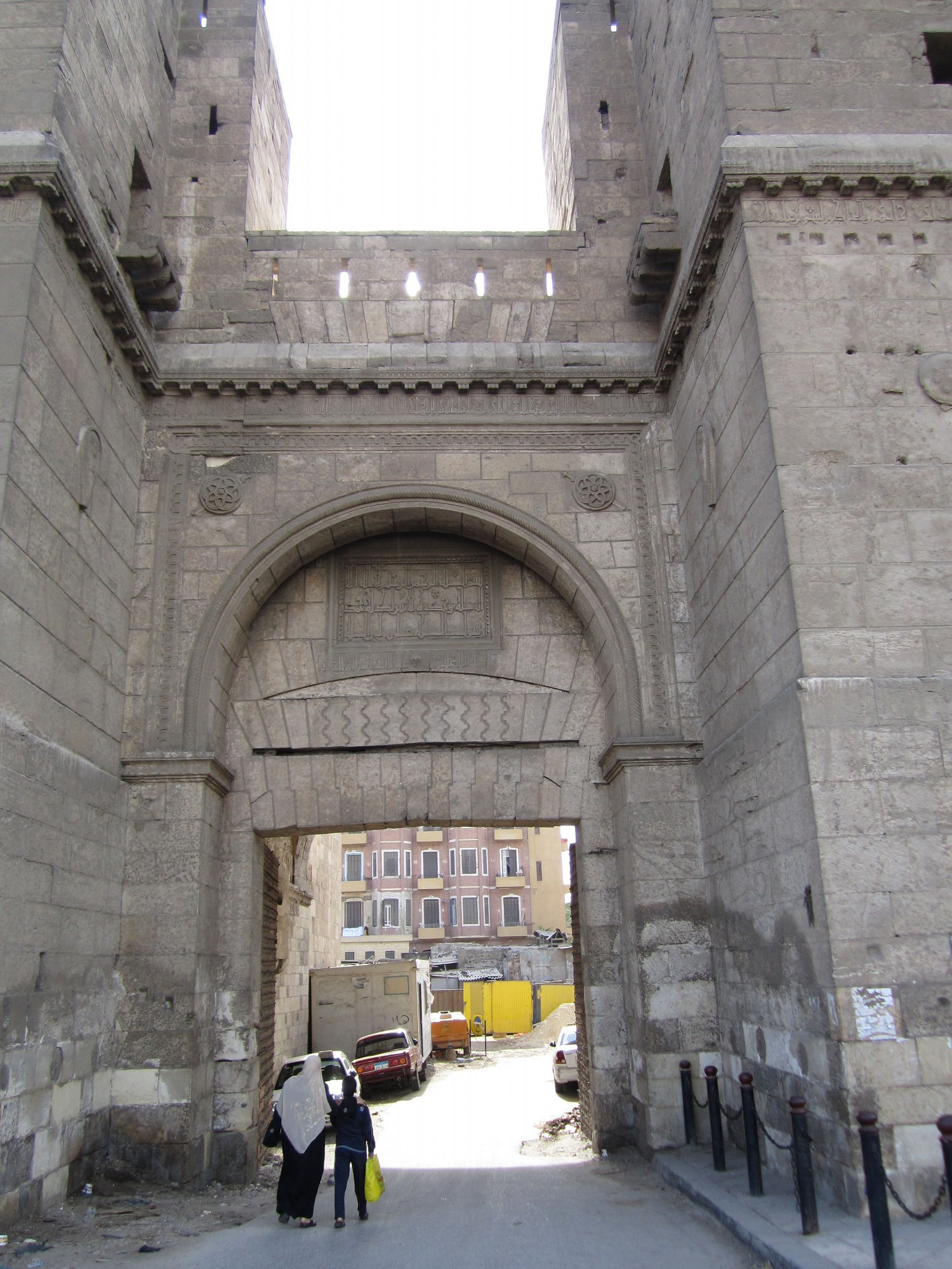 フトゥーフ門もナスル門も、車の乗り入れが可能で地元人の 交通路の一端を担っている。ナスル門に入り、そのまま貫きアフラーム通り方向に下ろうと思って いたのだが、現地の学生らしき若者が大声で呼びかけてくる。 『hey!』 「アアン!?」 『先を進んでも下水工事で行き止まりだ、引き返しな』 |