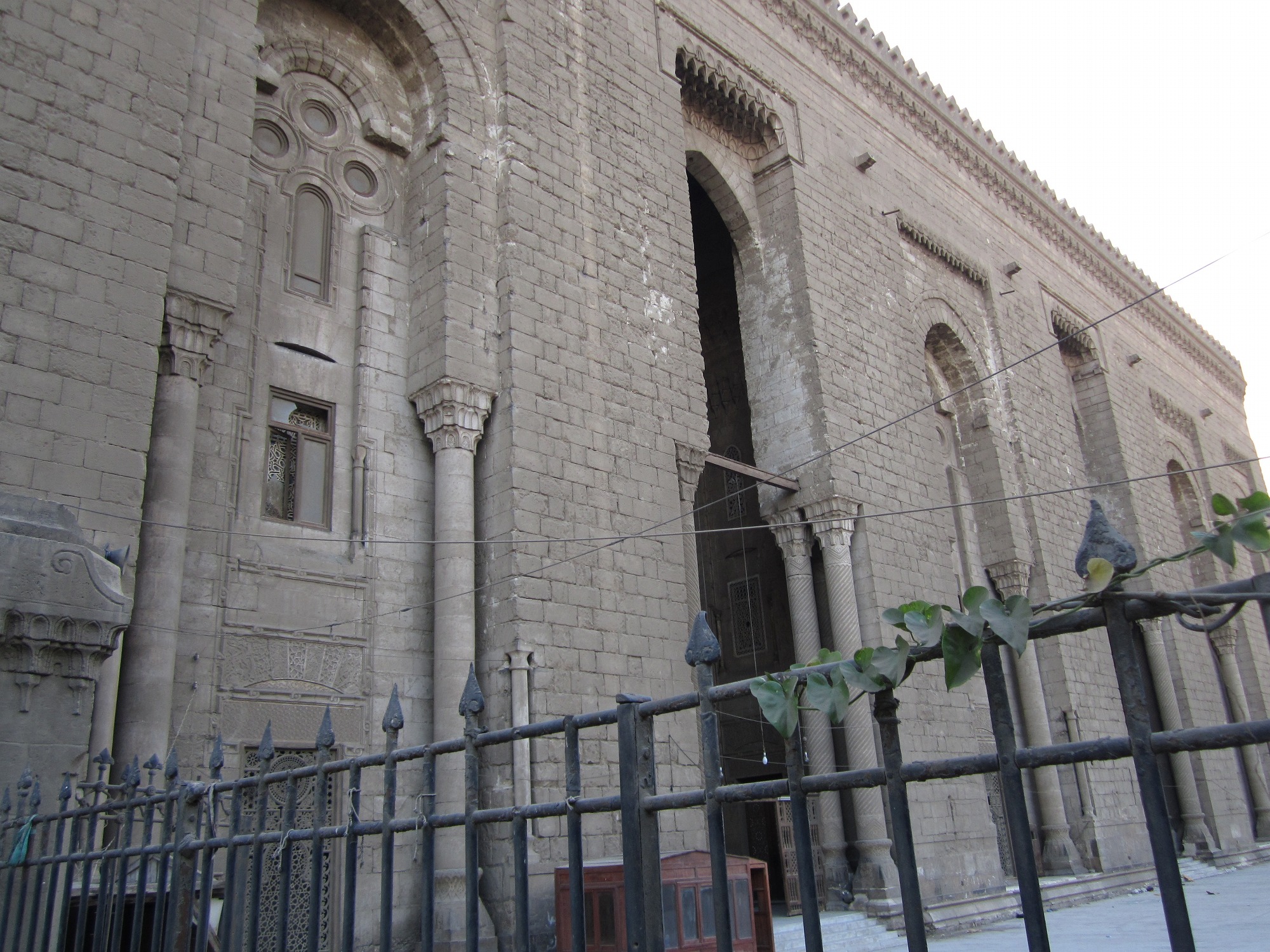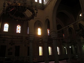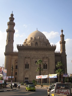 No timeでfinishです出場後、南に400メートルほど行くと ムハンマド・アリ通りに当たり、左にそのまま折れると、 ガーマ・スルタン・ハサンとガーマ・リファーイーとが在る。 この2つは、兎に角、巨大だ。西手を見上げれば世界最大級のイスラム建築の ガーマ・スルタン・ハサン、ここは外壁面の装飾が見事だ。加えて、 ミナレットは90mにもなる。 東手はガーマ・リファーイーといい、主に シャー(王)や権威者達の公墓として使われている所だ。創建は 新しく20世紀に入ってからであるが、以前の跡地はザーウェと 呼ばれ聖者の墓として、その歴史を経過している場所である。 イランの皇帝モハンマド・レザー・パフラヴィーが亡命先のカイロで死去したのち、 埋葬された所でも有名である。 どちらも見応えがあり、いざ、とばかりに入場口を 探すのだが、周囲は高い柵が連なるばかりで 一行にエリア内に入れそうな気配がない。 |