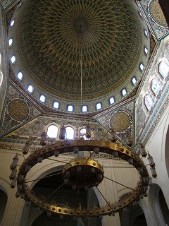 どうも、しっくりこない。周囲を見渡せるパノラマの景観である には違いないのだが、何と云うか、あまり荘厳感がない。何よりもブルーモスクたる所以の 青い壁面や、タイル張りが見受けられないのだ。 |