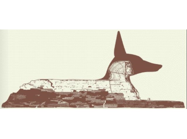 首から上は誰だったのか?実際にこの巨像を目の前にすると、全体的な モデリングバランスからでも、頭部の矮小さが際立ち妙な違和感を 覚えるのも確かである。ツタンカーメンの黄金のマスクに見られる 造形美や、天文学の知識を駆使したピラミッド配列など、 包括的な全体バランスや相対的な比率尺度を重視する、 丁寧な古代エジプト人の仕事からみても、この巨像に至りては 一種の「お粗末さ」さえ感じる。ここから先は‘仮の’はなしになるのだが、 では後世に首が挿げ替えられた(正確には一枚岩ゆえに、 そのまま既存の頭部を2度彫りした、との主張)とすると、 以前は誰の、どんな形の頭が居座っていたのだろうか? これにも、様々な説が存在するようである。 根本的に頭部は人間でないとする説もある。 鎮座する残りの胴体部における筋肉の付き具合、 塑像の限界性からも考慮するに、それは『アヌビス神』 である、とも主張されている。アヌビス神は古代エジプトにおける 神と崇められた存在で、死を司る神であったという。風采はズバリ「山犬」である。 もともと、ギザの台地はピラミッド建設以前から聖地とされ、信仰の 対象になってきた処でもある。古代のエジプト人は ナイル河を割った太陽が昇る東側を生の域、太陽が沈む西側を死の域として 捉えてきた。西にあるギザの台地には、その象徴として冥界への先導神である アヌビス神を逸早く祭った、という訳である。 様々な説があるようだが、確定的な事象は何一つない。 後世、多くの人々の探究心や浪漫を掻き立てて止まない永遠の物言わぬ語り部なのだ。 |