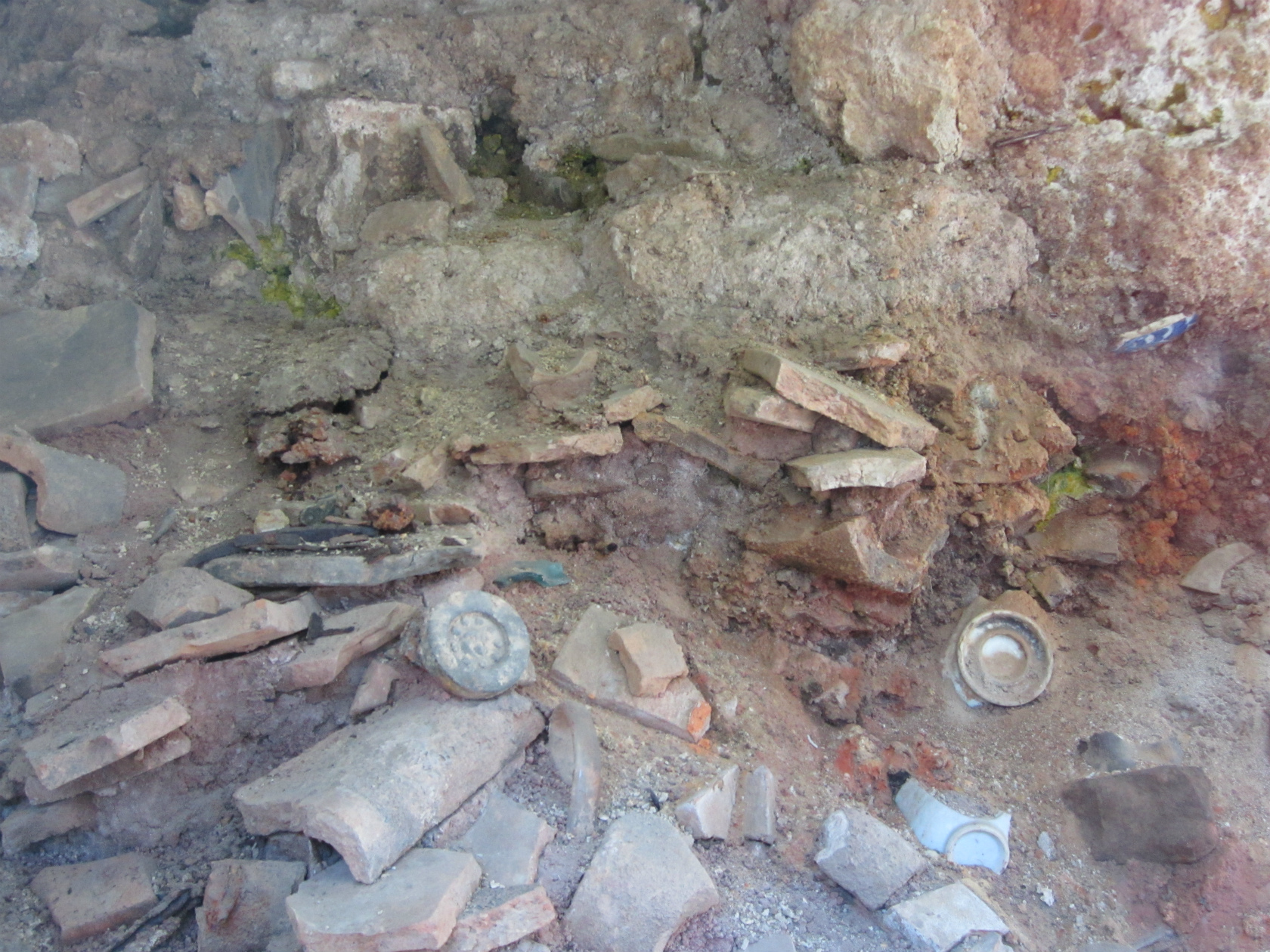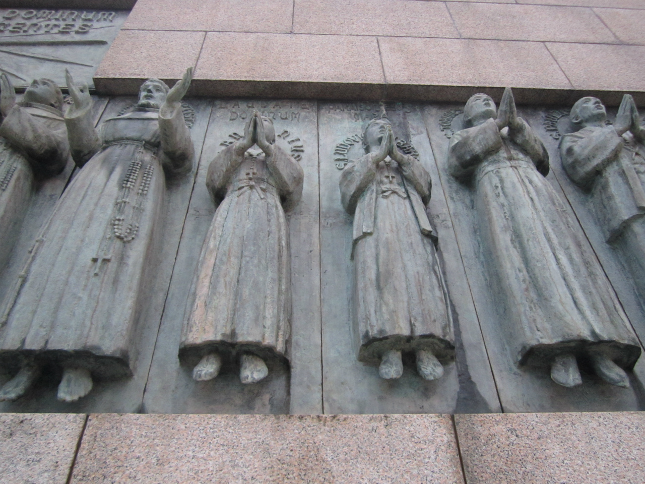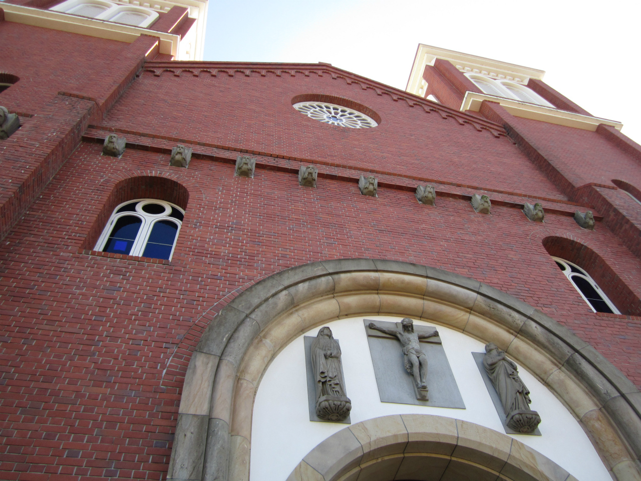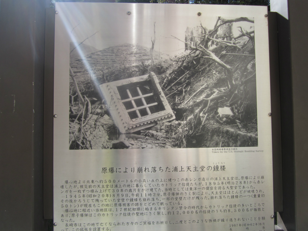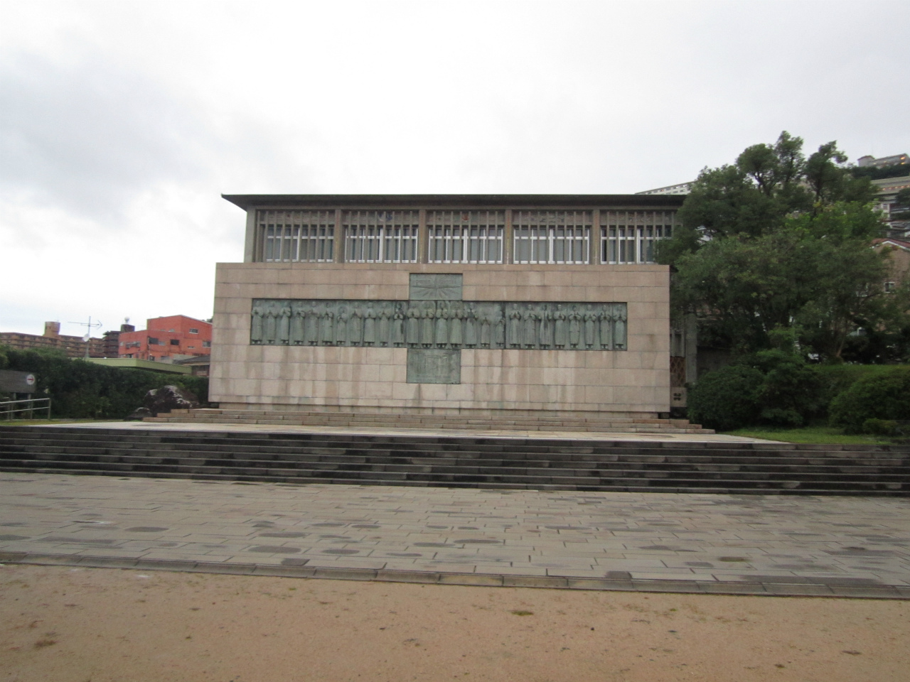 爆心地の塔の脇に浦上天主堂の側壁残骸があります。1958年に 新たな天主堂を再建する際に、この場所に移築されたそうです。 |