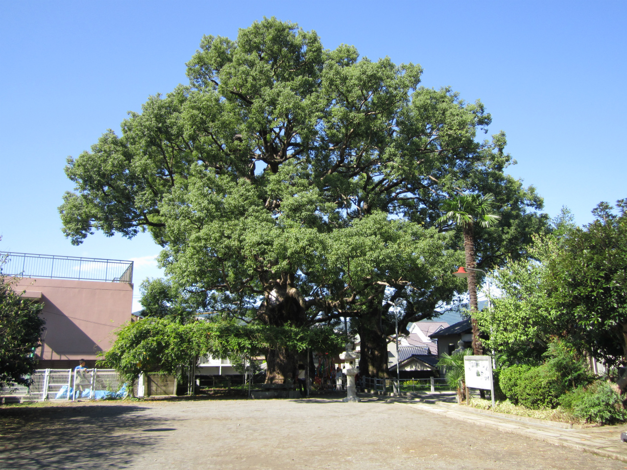 山王神社のもう1つの見所は、被爆クスノキです。2本の巨木は爆風 と熱線により枯れ朽ちたと思われた ですが、その後に新芽を息吹いて見事に復活し、その生命力を誇示した 所以で神木として崇められています。 |
