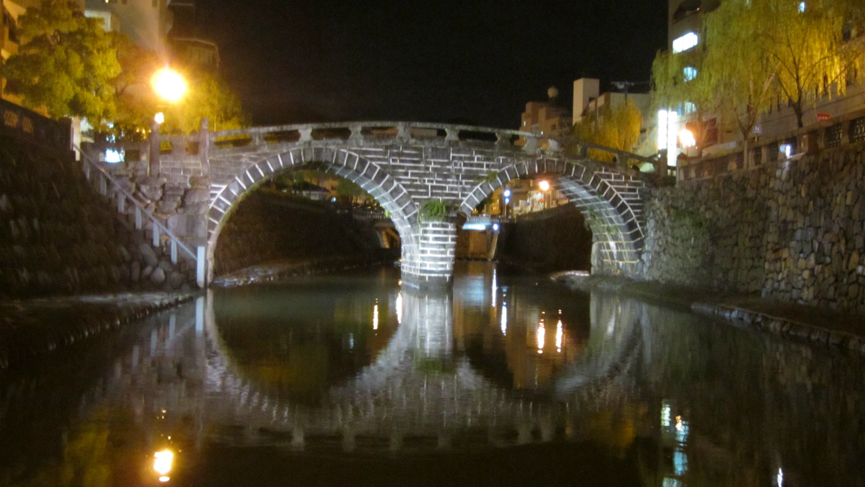 石橋は何種類かあるようです。 川辺に下りることができて、また 夜間はライトアップされているようです。 |