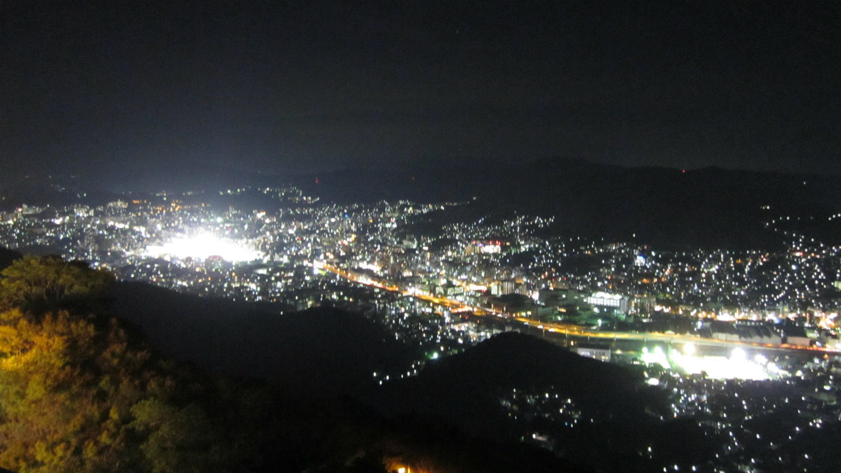 頂上は複数のテレビ塔があり、その脇に立派な展望台があります。 眼下に広がる夜景は、日本三大夜景の一つに数え られているそうです。 |