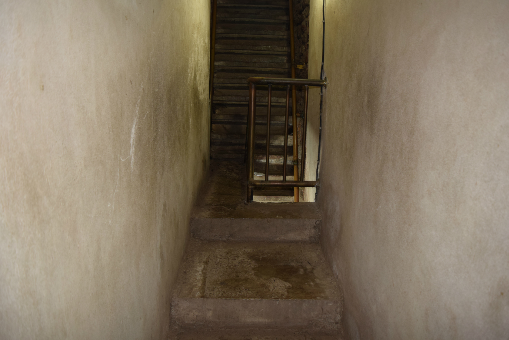 正面に向かって高い塔があり、こちらには入場できる。各階に手摺り付きの階段が設け られており、3層が吹き抜けの構造になっている。 |