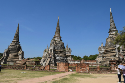 3基並んだ仏塔の裏が『アユタヤ王宮エリア』であるが、ビルマ軍の破壊により現在は 遺構の欠片一つなく見る影もない。 |