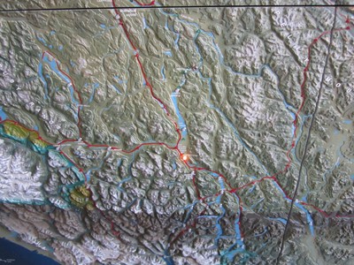 ランプの点くボードがある。これで、付近の都市との位置関係が わかる仕組みだ。 「う〜ん、ホワイトホースはこれかな?ポチッとな」 ピカピカ! 「フォッフォッフォッフォッ」 タキーニ温泉予定通り、1時間後に指定場所に 男が車で戻ってきた。 『どうも、どうも。楽しめましたか?いや〜、凄い量のお土産ですね』 「・・・フォッフォッフォッフォッ」 袋一杯の土産物を を車に移し、どっこいしょ〜、とばかりに助手席に腰を落とした。市内観光の 最後は、タキーニ温泉という郊外にある天然温泉プールに連れてってくれるようだ。 市街地中心部より、かなり距離がある。 |