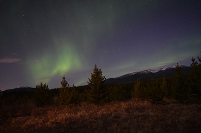 2日目、日中はホワイトホース市内観光だった。その後、ロッジに戻り 夕食をとって、夜に備えて昼寝することにした。 ウトウトした後、目が醒めて窓先を見ると外は明るい。もう少し仮眠しようかと、 時計を確認すると既に夜20:00を回っている。 白夜雄大なクルガニー山脈に茜色の夕日が映え、 山風が静かに穂を揺らしていた。肌寒い以外は日本の風景と然程変わりはない。 日本に暮らす感覚なら、17:00時くらいの風景だ。驚いて、再び時計を見ると20:35時とあり、 部屋の時計を確認しても間違いはなさそうだった。 ここ、ホワイトホースの4月は 夜20:00 時を過ぎても明るい。いわゆる、日が落ちない「白夜」に入りつつある季節であった。 |