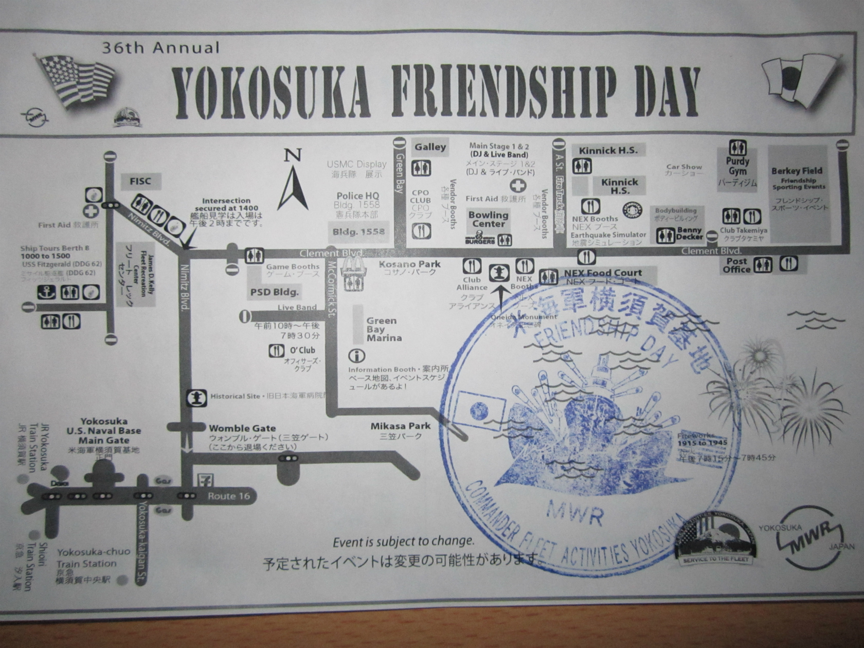 横須賀基地は、季節毎や日米の主要な祭りの際など比較的頻繁に 開放見学されています。ここでの写真は2012年の8月に行われたフレンドシップデーの様子です。 横須賀基地の所在は、R16を南に進路を取ります。 当日はゲート前の歩道に大行列が出来上がっていますので、まず迷うことなく 辿り着けるでしょう。ゲートは3ヶ所(正面ゲート、三笠ゲート、三笠公園内ゲート)と ありますが、本祭では「三笠公園内ゲート」のみが入場可能でした。 入り口で手荷物検査 があります。 |