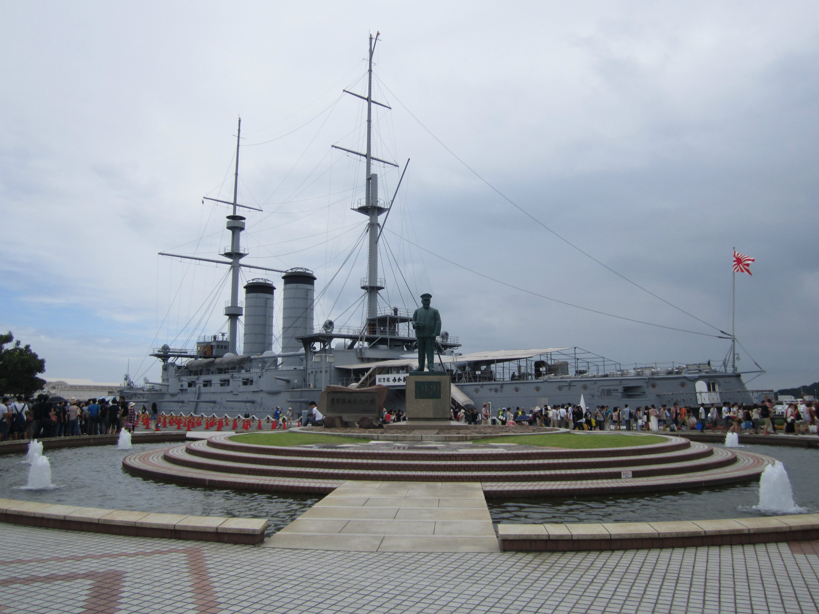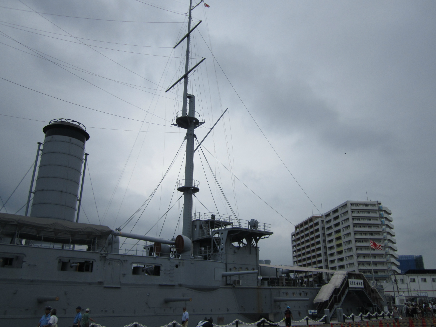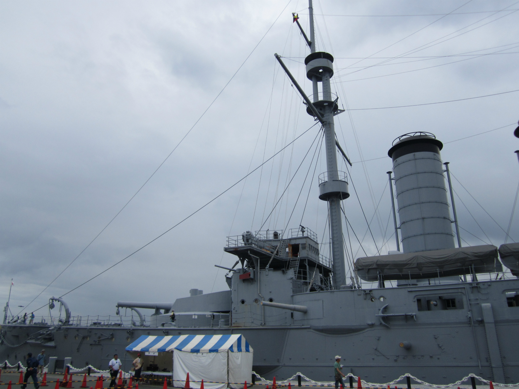 三笠公園内ゲートには、記念艦「みかさ」の展示があります。 |