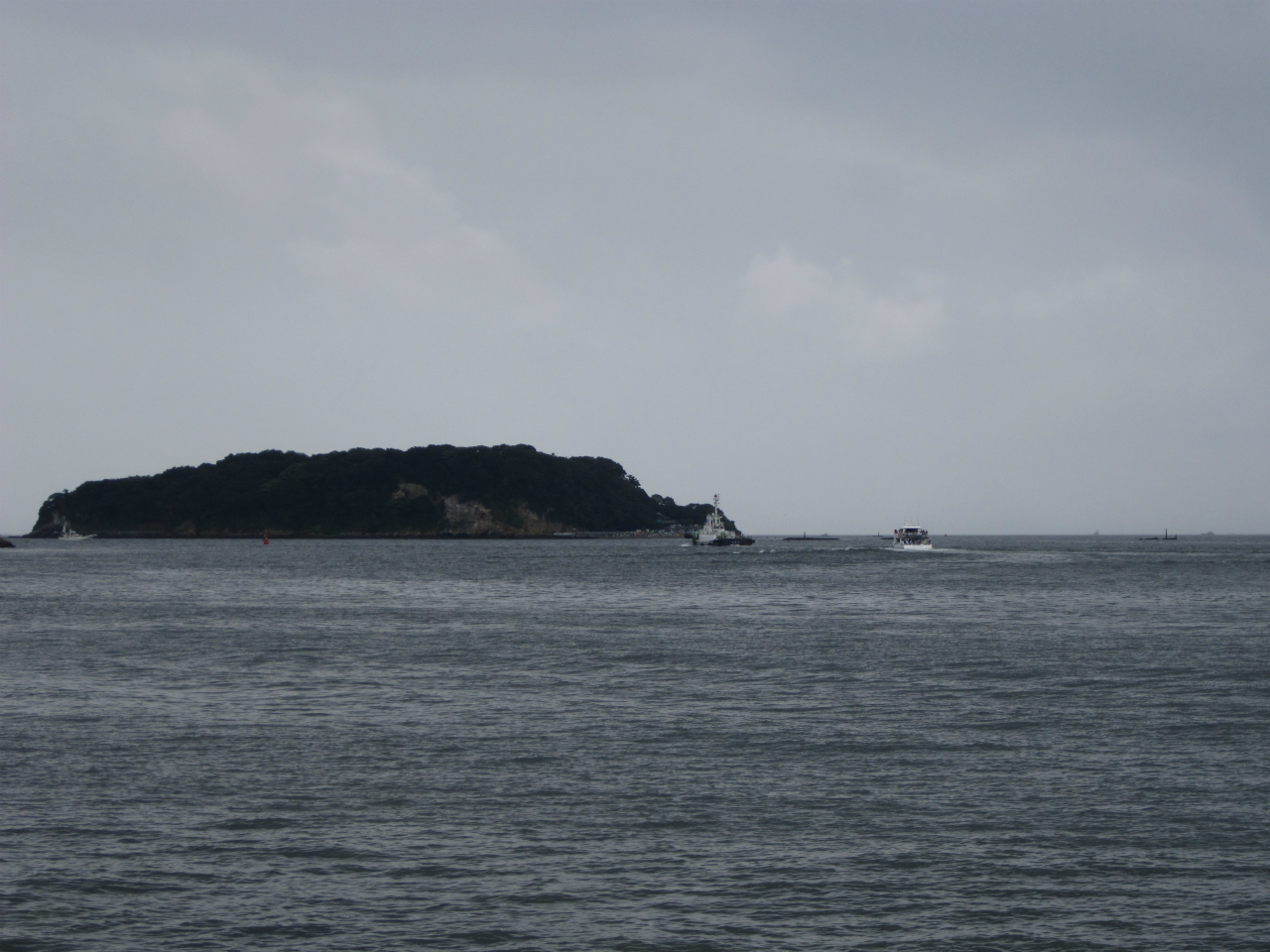 横須賀新港から東方向を望むと、猿島が見えます。 終戦までは一般の人の立ち入りは禁止されていましたが、現在はエコミュージア ム猿島として連絡船で気軽に訪れることができるようになっています。 |