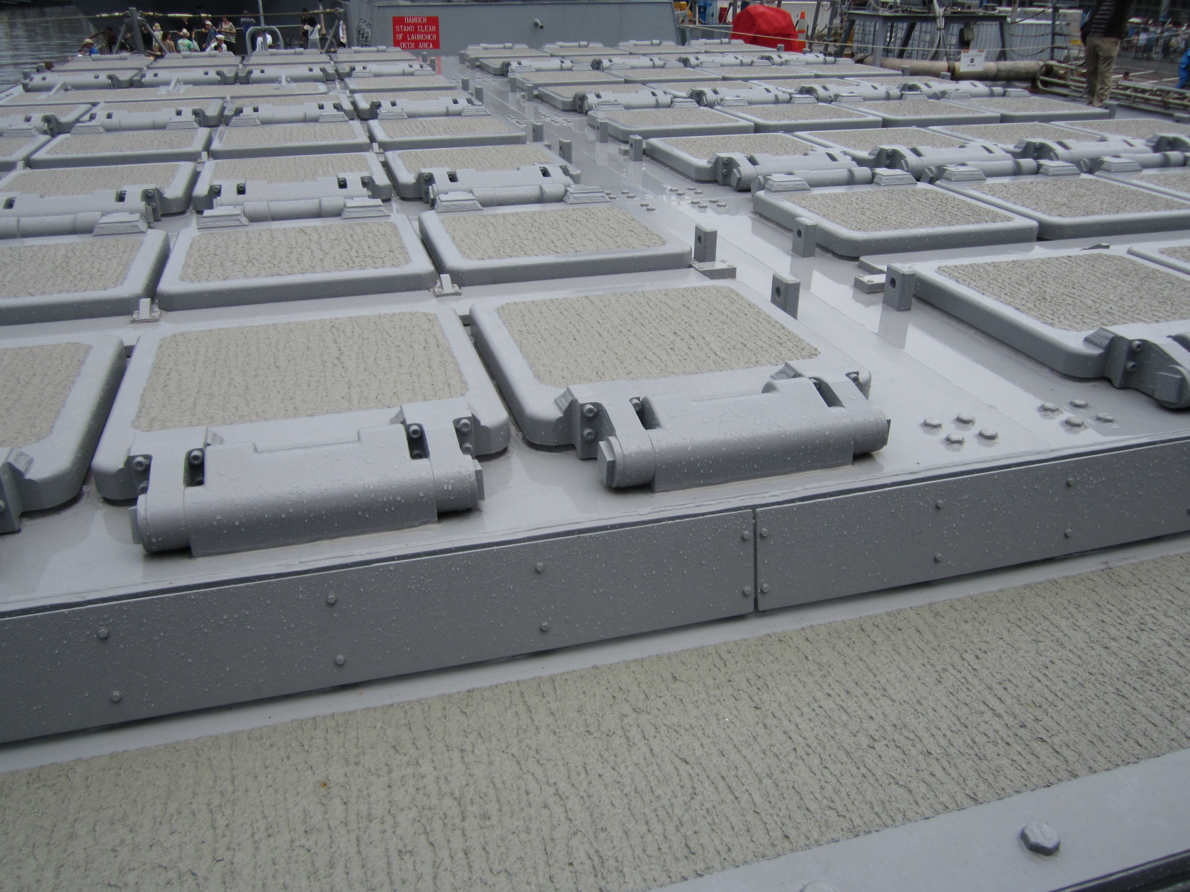 船首、船尾側にそれぞれ VSL(垂直発射システムミサイル)が配備されています。また、本艦はBMD(弾道 ミサイル防衛)も可能とのことです。 |