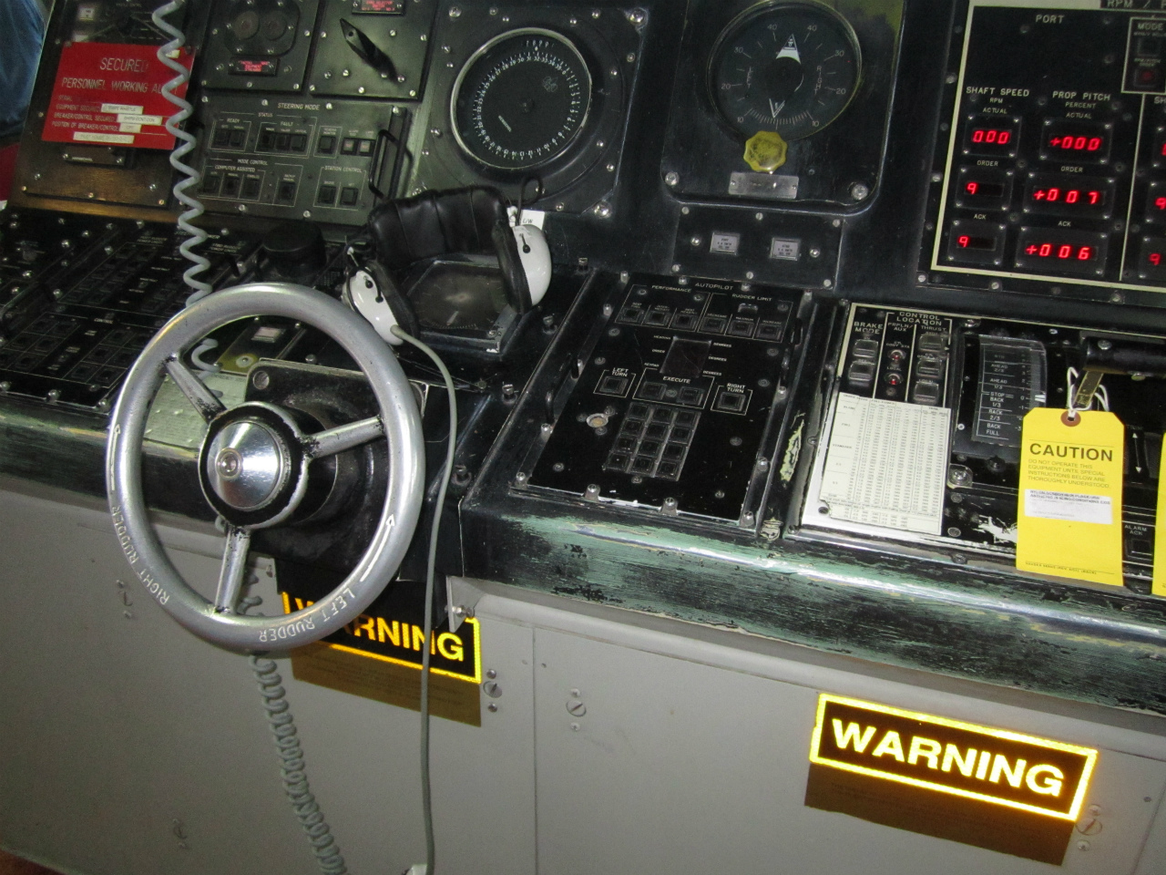 操舵室エリアは、希望者のみ見学です。梯子を登っていきます。 |